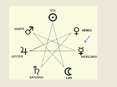 O próprio símbolo do planeta Mercúrio que aparece na estrela de 7 pontas já aparece com esse capacete alado como podemos observar na figura abaixo
