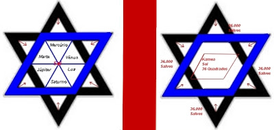 Da mesma forma na Estrela de Davi entre o triângulo superior e o triângulo inferior está ali simbolizado o homem encarnado (como já explicado no item 2 desse texto).